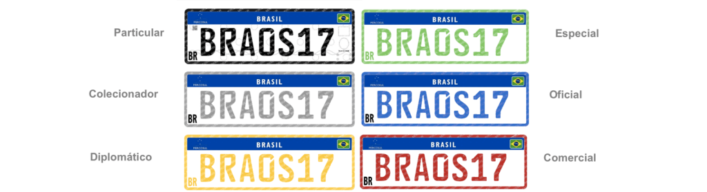 As placas do Mercosul possuem fundo branco e caracteres pretos, mas podem ter cores variadas, indicando diferentes categorias de veículos, facilitando a identificação de cada tipo.