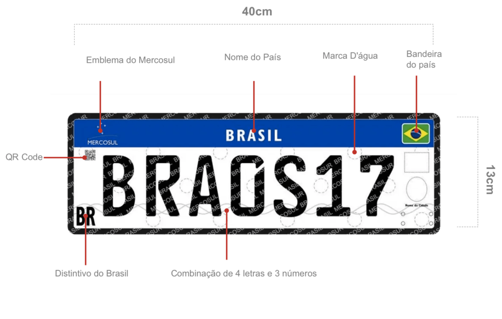 A placa do Mercosul foi criada para padronizar a identificação veicular entre os países membros: Brasil, Argentina, Paraguai e Uruguai. Com fundo branco, caracteres pretos e uma faixa azul com o nome do país e o símbolo do Mercosul, ela facilita a circulação entre as nações e melhora a segurança. O modelo também inclui tecnologias como QR code e chip, que ajudam a evitar fraudes e permitem uma integração mais eficiente das bases de dados veiculares.